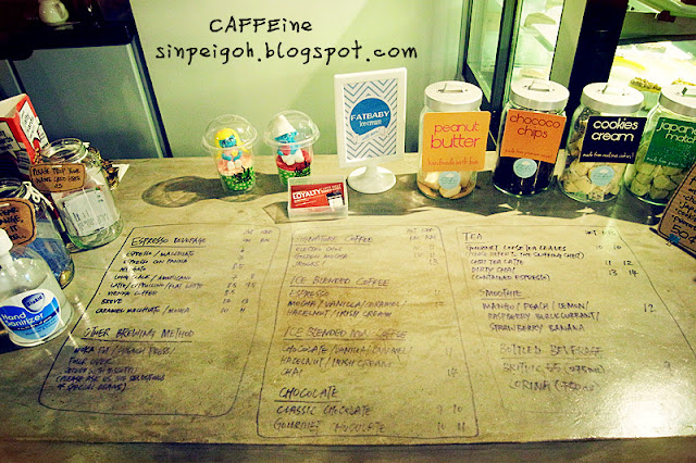 CAFFEine;有个promotion就是买了一片蛋糕可以用优惠价RM6.00买一杯咖啡,不过当然有限制咖啡的选择。