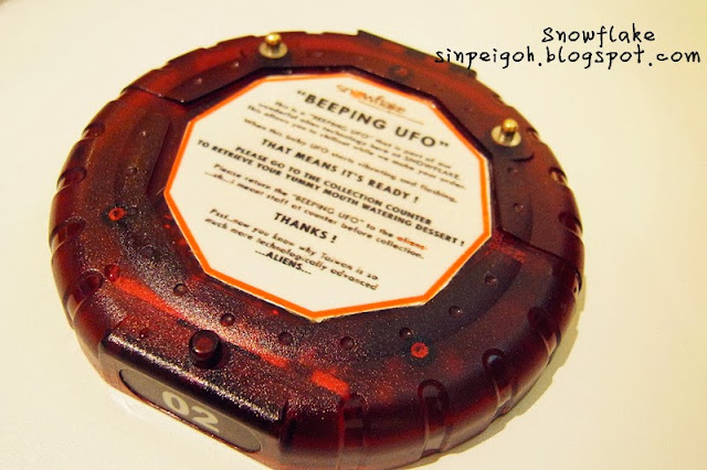 Snowflake是self-service自助式的,自己需要去柜台order付款后,服务人员就会把UFO交给你,等UFO响时就代表你的甜品已做好,可以去柜台领取咯~