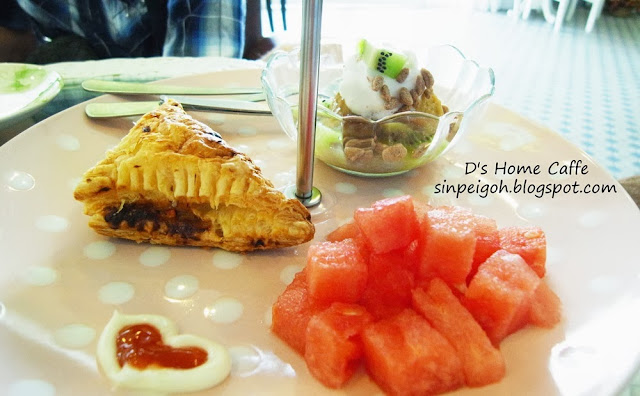 吃完了蛋糕甜点还有西瓜哦,老板娘还贴心得把辣椒酱和Mayonnaise变成了心型,真是创意无限啊!❤