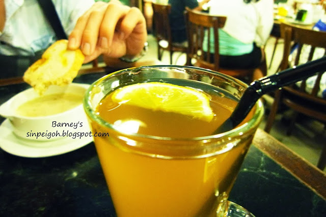 饮料选择:柠檬茶,热茶,咖啡;我选择了前者。