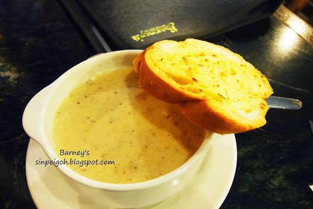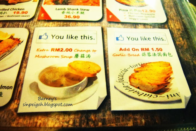 加RM2.00把甜品换成蘑菇汤,加RM1.50加个蒜茸法国面包。