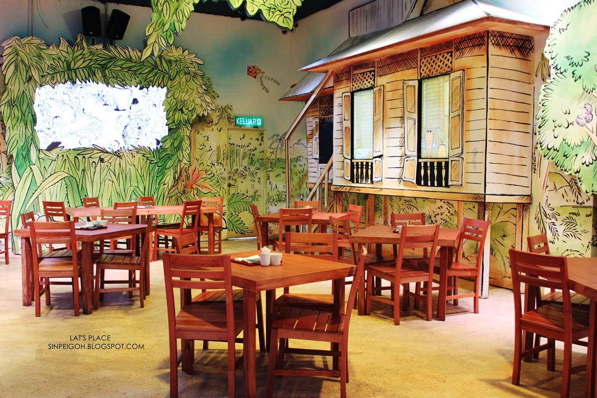 餐廳裡有漂亮的甘榜場景,簡單的木色桌椅帶出濃厚的馬來鄉村味道。