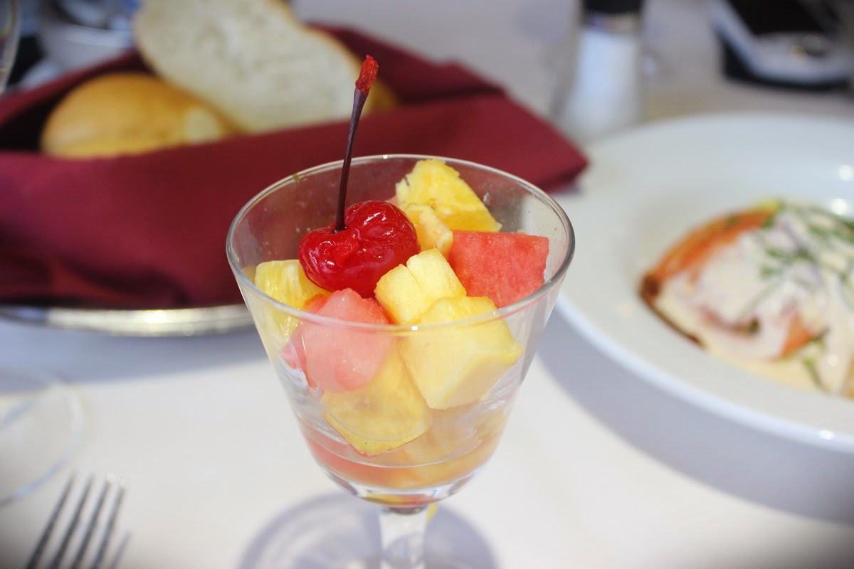 很可愛的迷你高腳杯裝著丁塊狀的水果,還有櫻桃裝飾,我個人好喜歡。