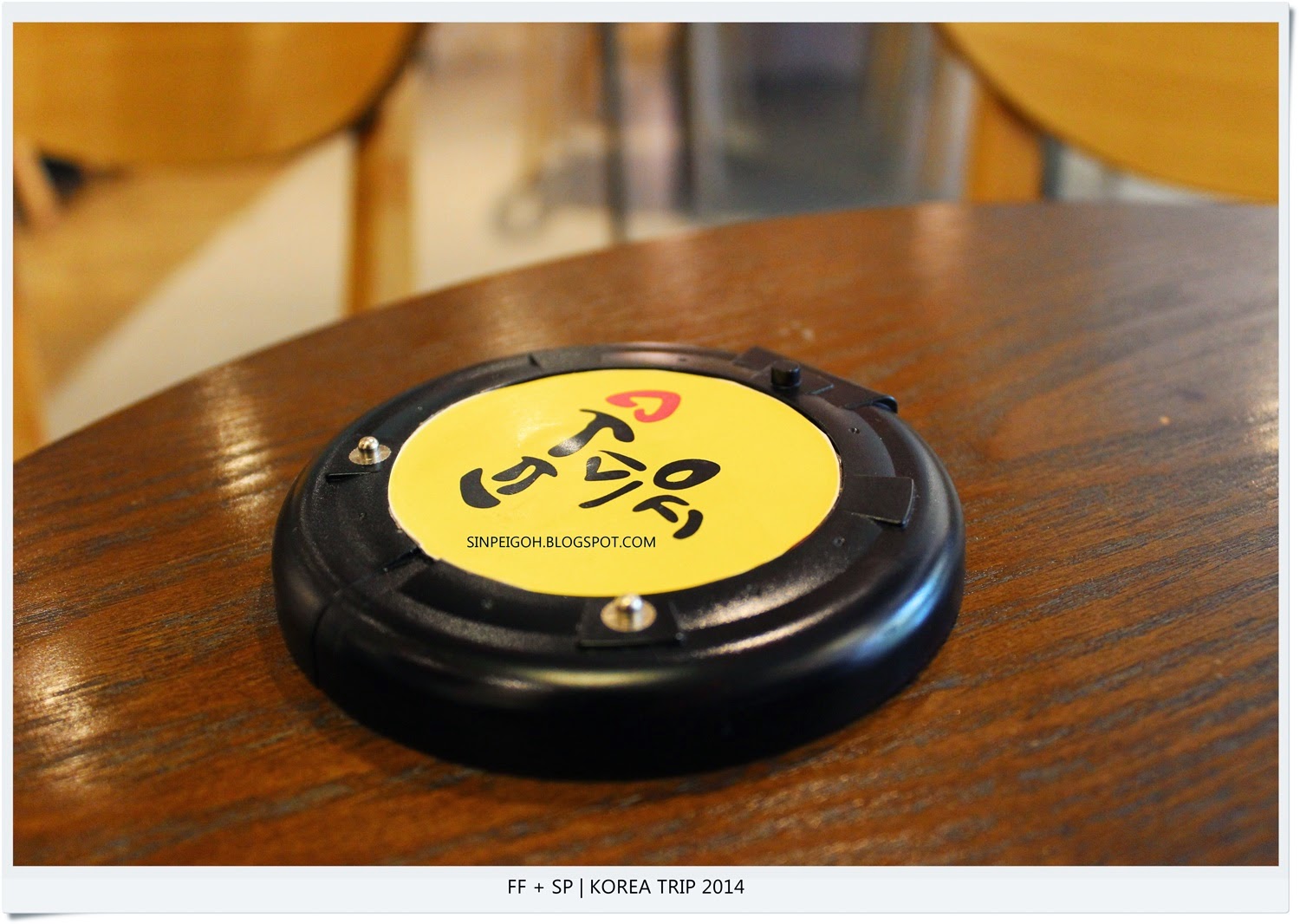 韓國的Cafe都用採用方便的電子磁盤,當震動時我們需要下樓自己端食物。