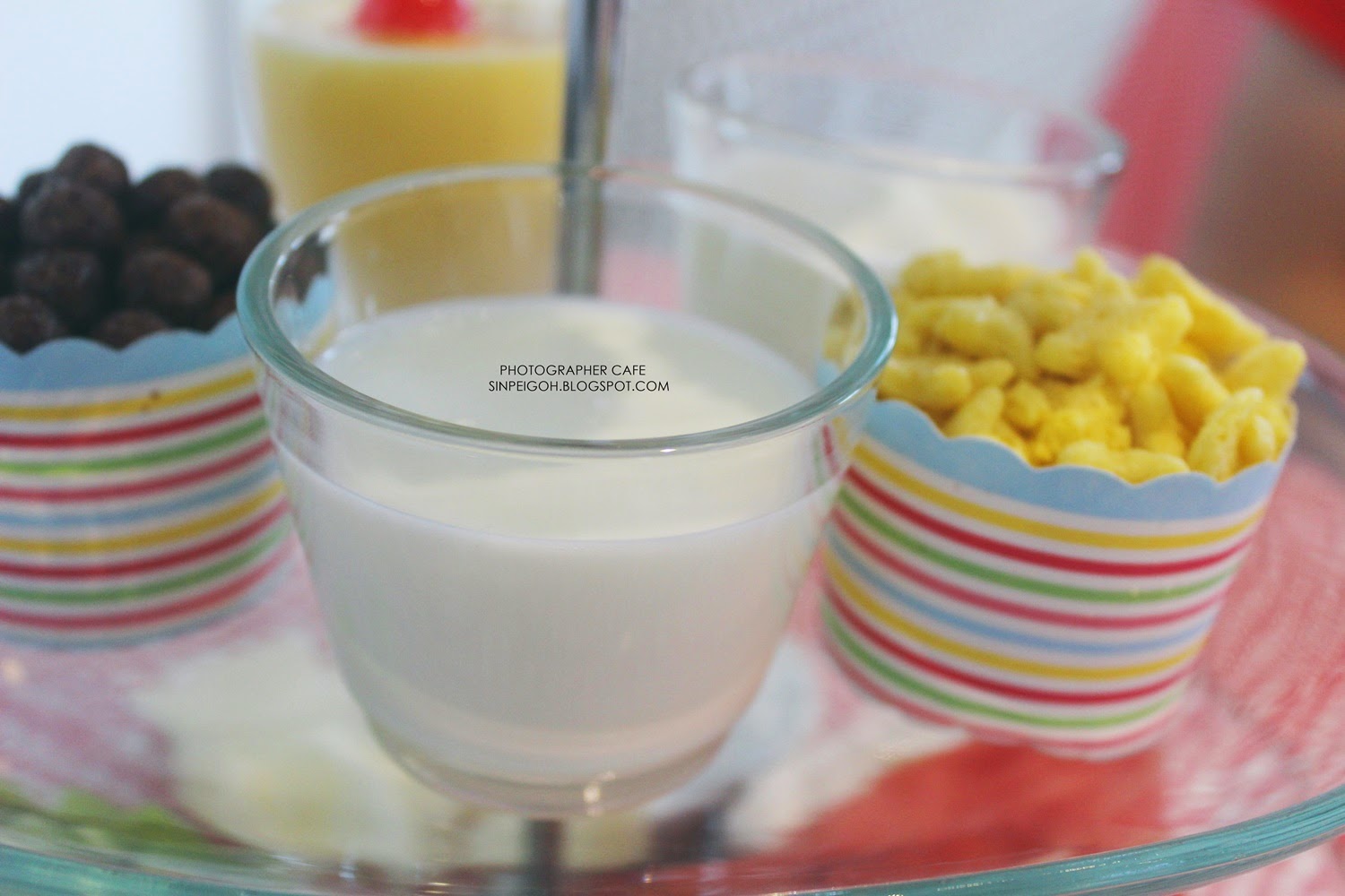 第二層很特別,是大人小孩都喜歡的早餐谷糧,還搭上鮮牛奶呢!