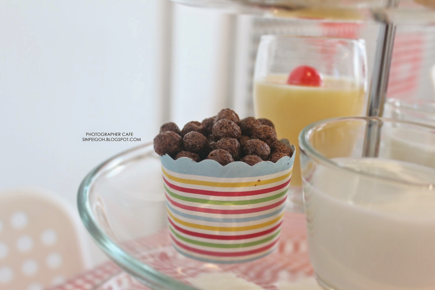 第二層很特別,是大人小孩都喜歡的早餐谷糧,還搭上鮮牛奶呢!