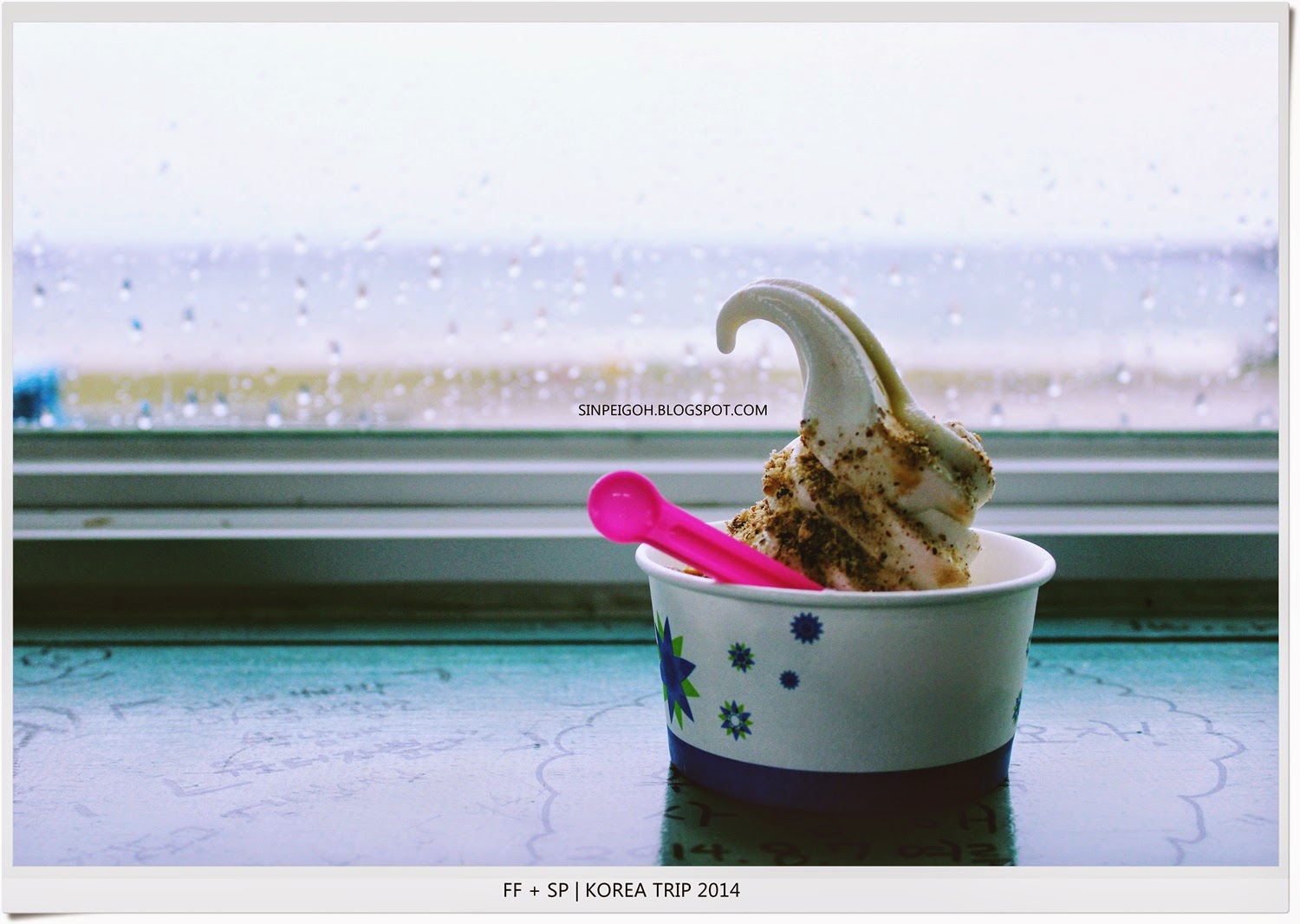 走著走著突然下雨了!眼看雨越下越大,我們趕緊到海水浴場附近的小小咖啡館坐坐。