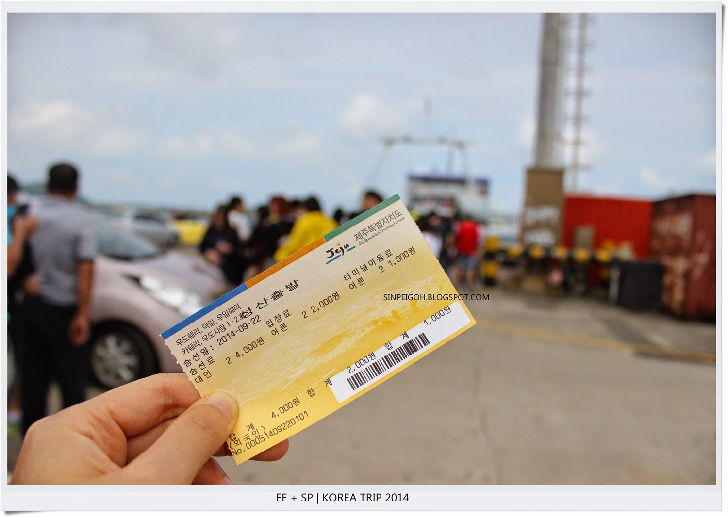 買票時櫃檯小姐會問你是否是當天返回,船票是一人KWR2,000,當天來回再加牛島票總共是KWR5,500。之後櫃檯小姐會把船的來回時間交給你(上圖),大家一定要記得末班船的時間,不然就要到隔天才能返回濟州島咯。