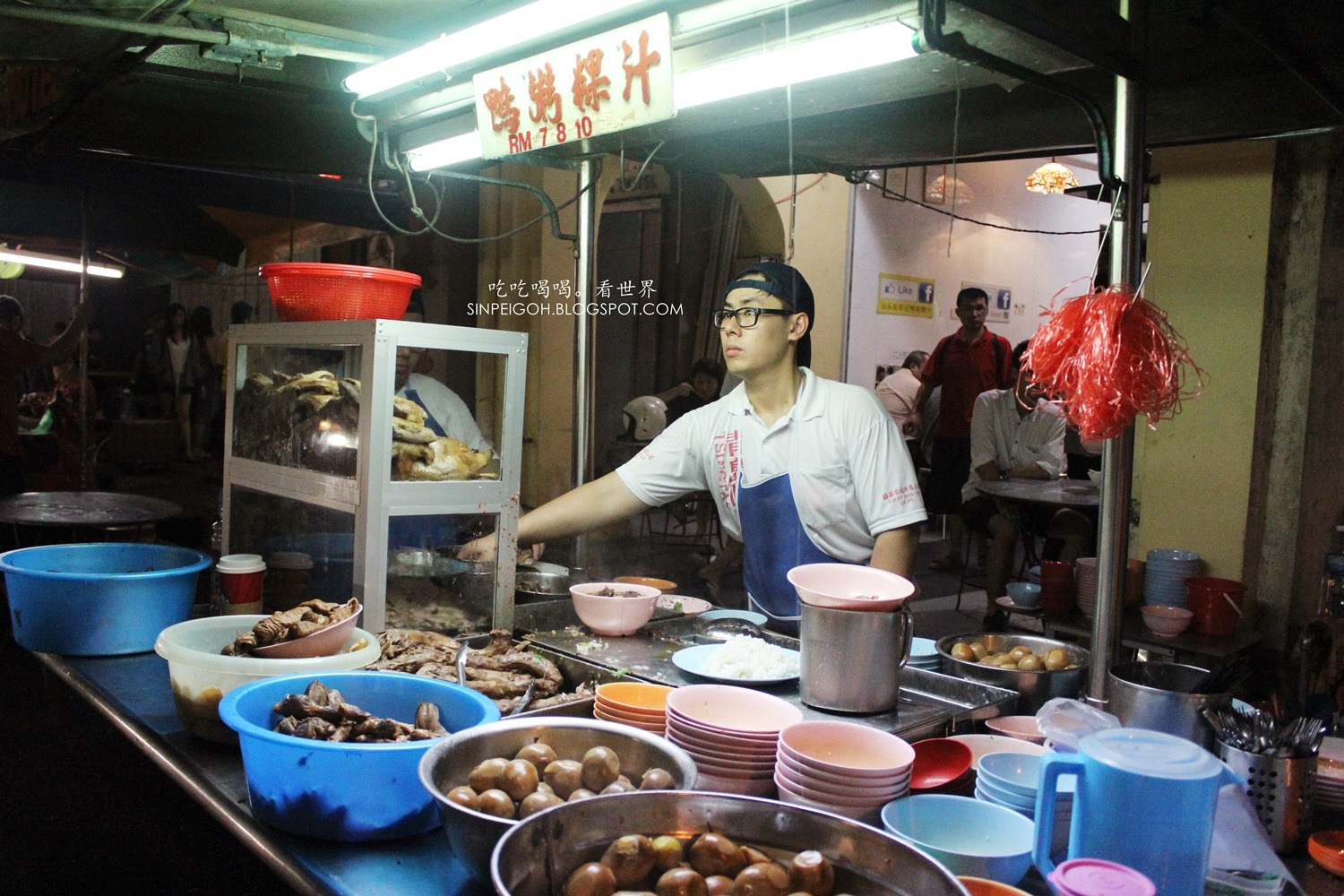 首先第一檔我們來到了權記鴨粥淉汁,晚上八點多這裡的人潮早已爆滿,等了片刻才有位子坐下。點了一份淉汁,順便交待老闆不要放豬血。招牌上也清楚寫著價錢,RM7/8/10分別代表了小/中/大。