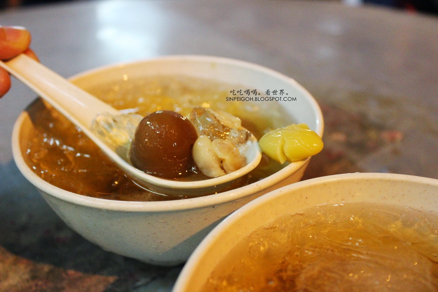 由於是男友負責去點餐,我只說我要喝四果湯卻忘了這裡其實也很出名杏仁茶,所以他竟然也點了和四果湯很像的傳統清補涼。