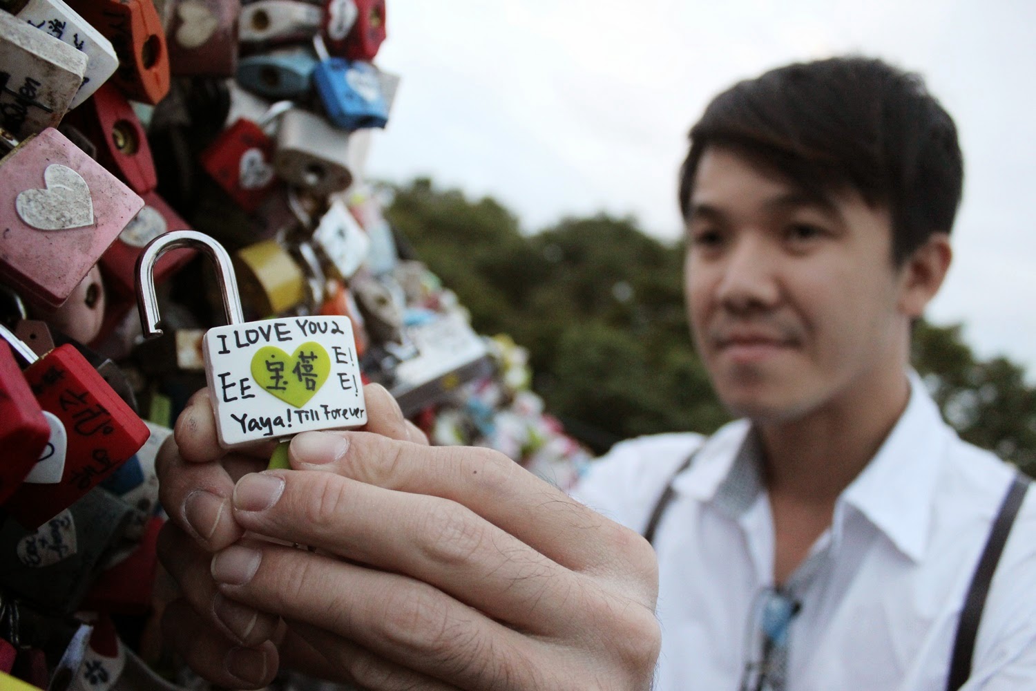 寫好後就要挑選位子鎖上我們的愛情鎖咯,神聖的一刻啊!❤