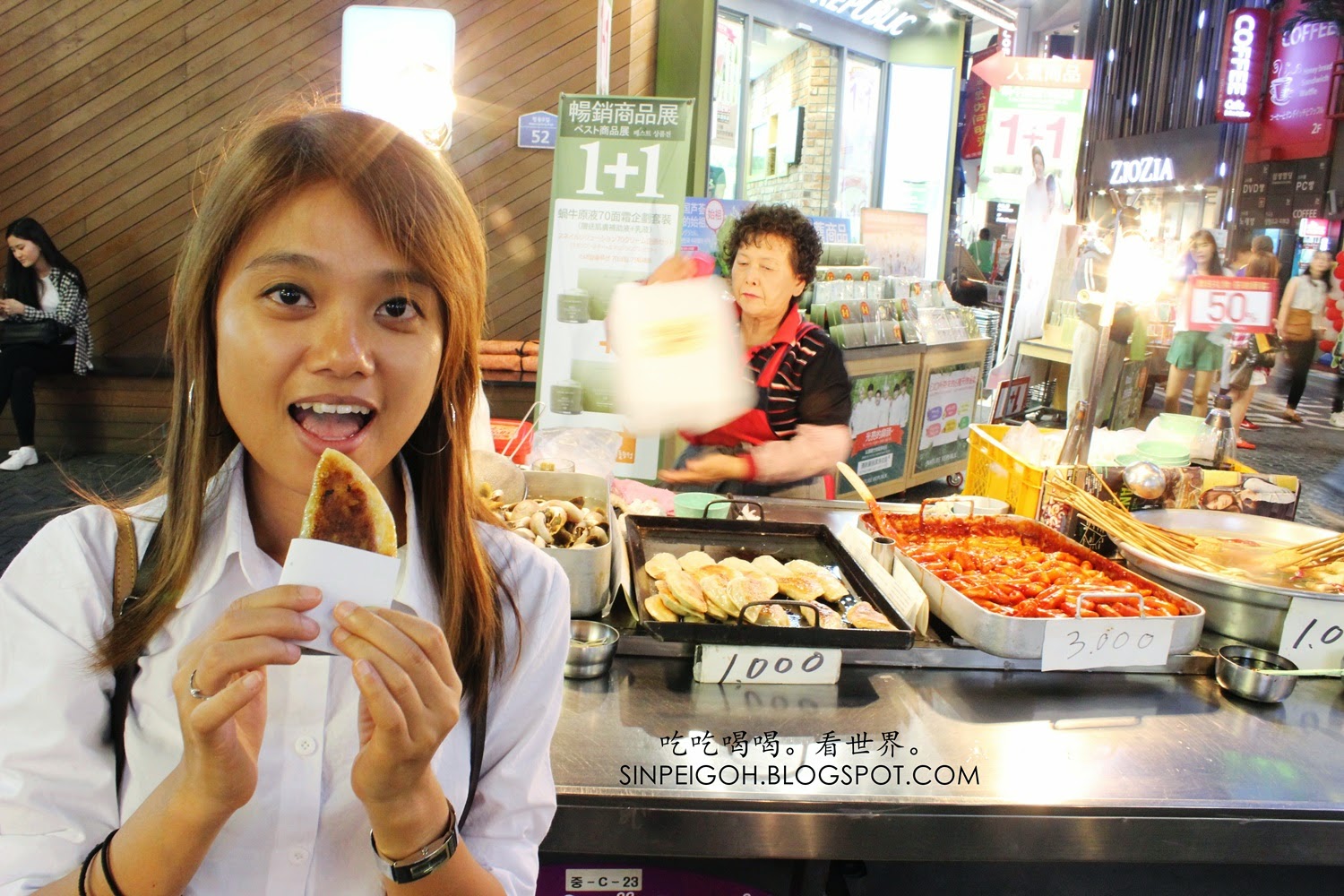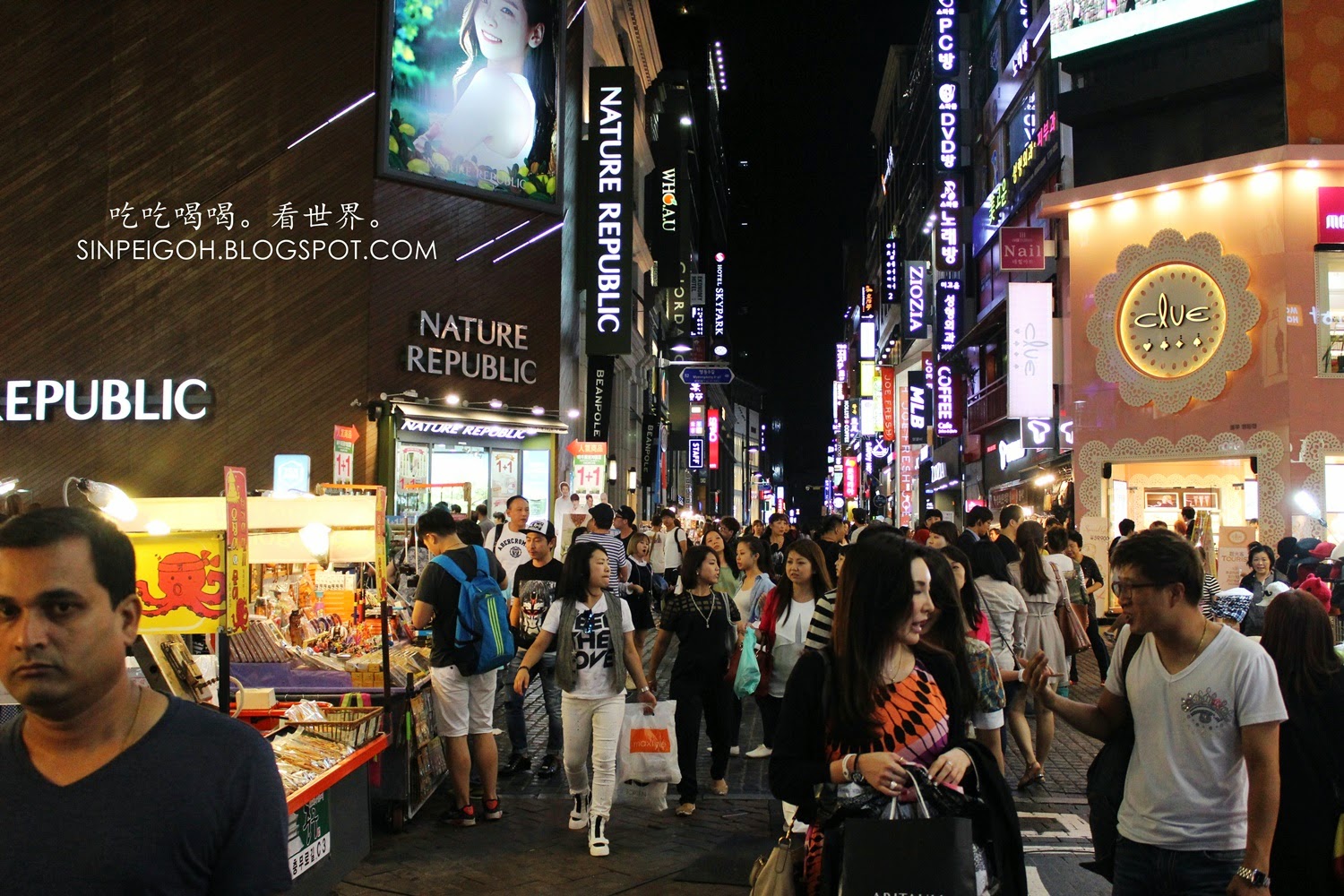 相信大家都知道韓國的明洞是個血拼好天地;面膜、化妝品、保養品滿街都是,可說是女人的購物天堂。但除了購物,我萬萬沒想到原來明洞也是小吃美食街,種類繁多的小吃真是讓我念念不忘。