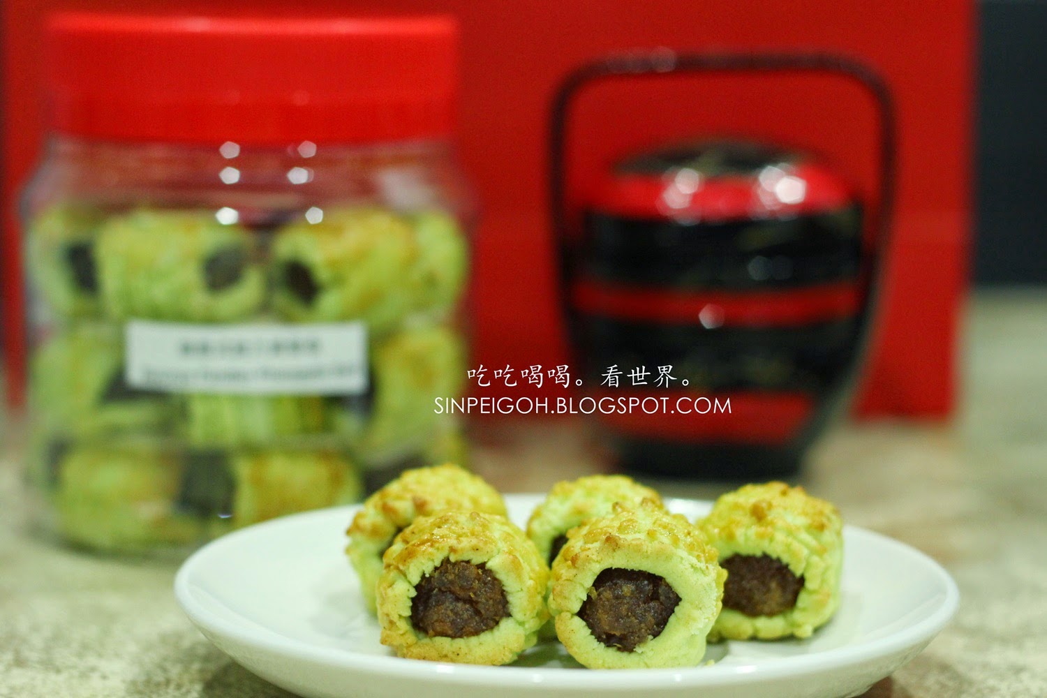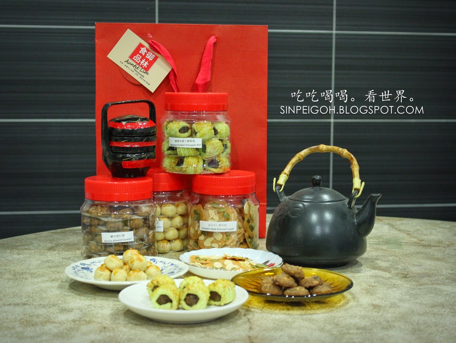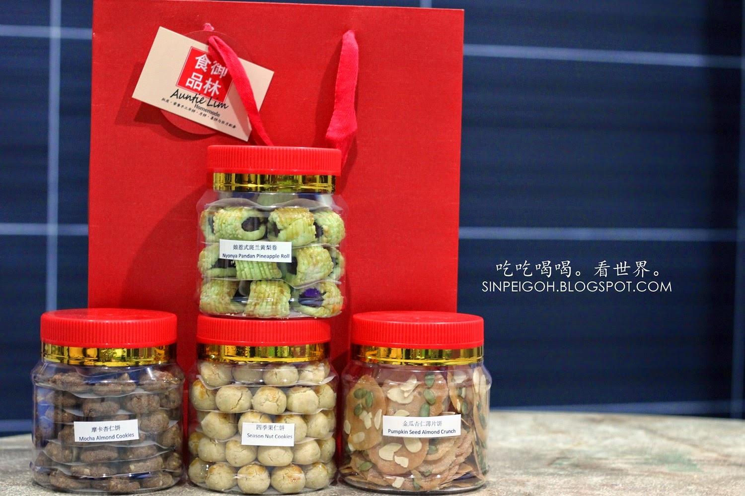 這些就是御林食品的負責人林小姐專門為我挑選適合我口味的年餅,分別是:娘惹式班蘭黃梨卷、摩卡杏仁餅、四季果仁餅以及金瓜杏仁薄片餅。