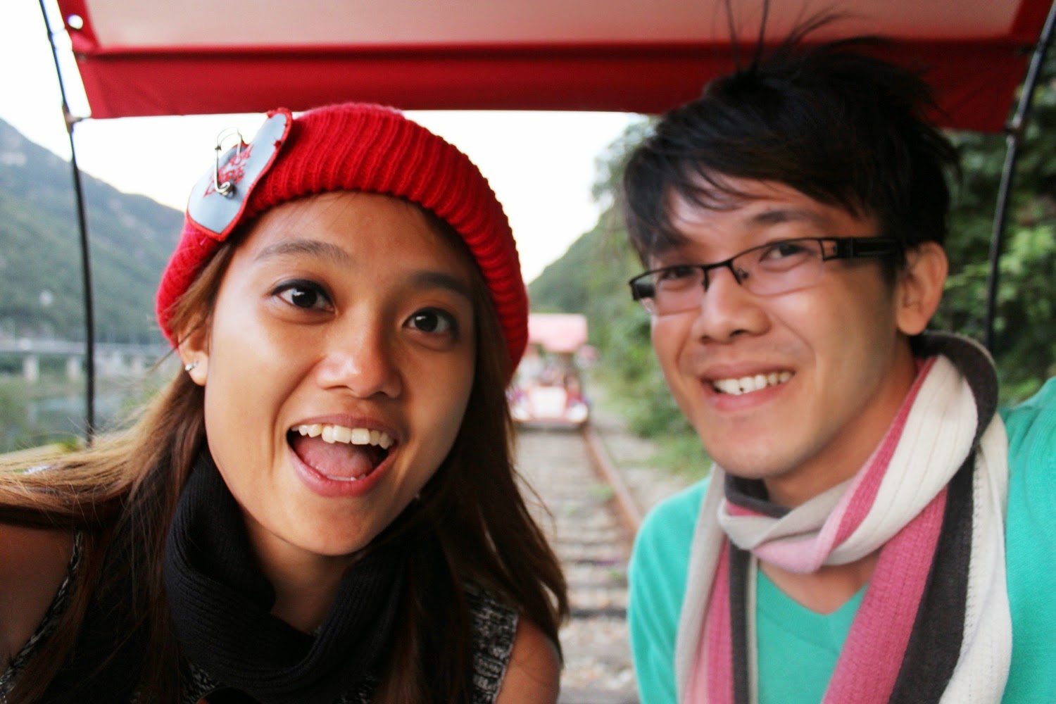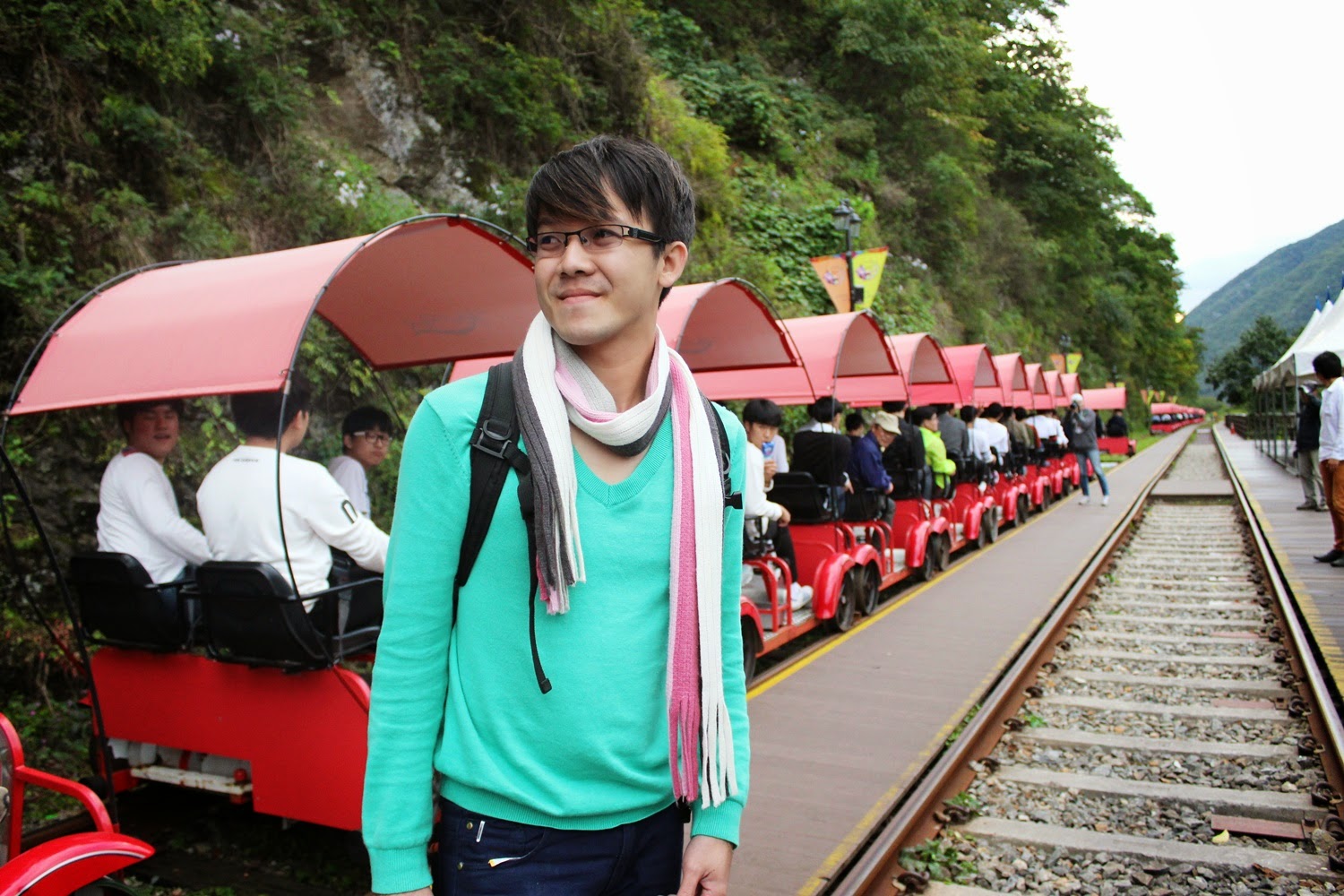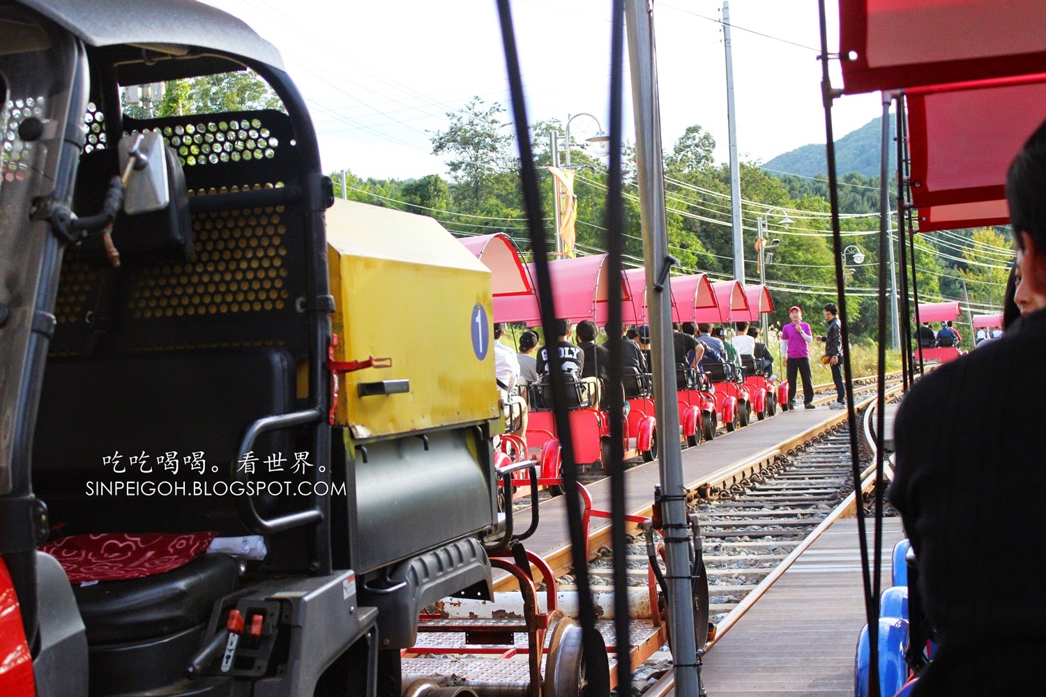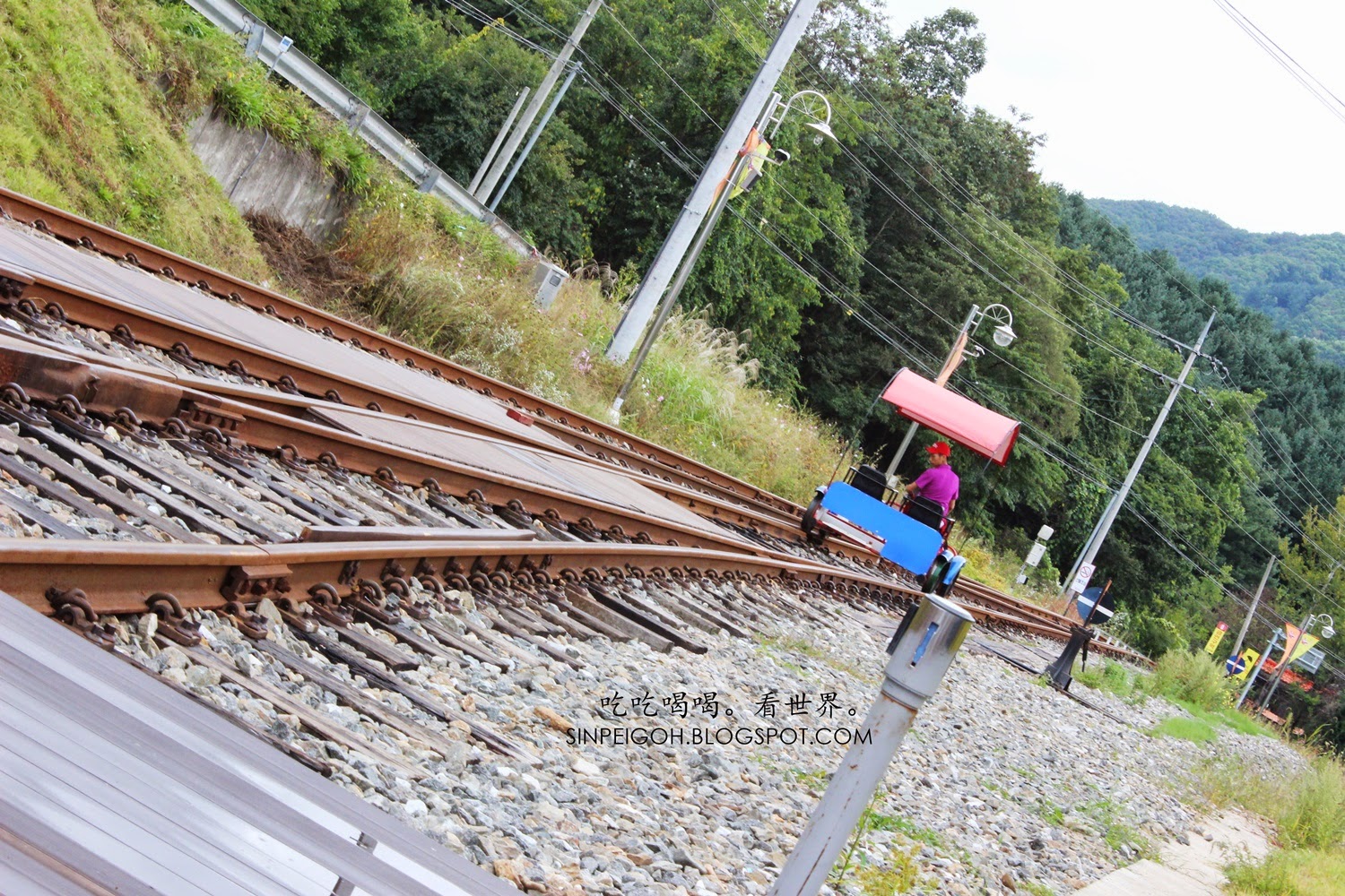 江村鐵路自行車是最近韓國超流行的戶外活動之一,連韓國綜藝節目Running Man也到此拍攝,我們又豈能錯過?江村鐵路自行車是利用被廢棄的"舊京春線"鐵軌改造而成,自行車的輪子是固定在鐵軌上的,大家可以放心騎。