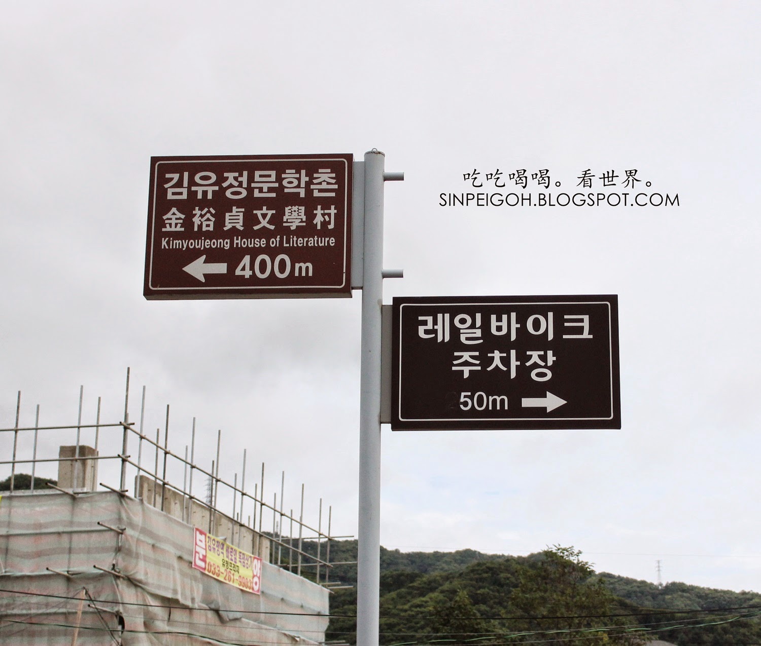 出了金裕貞站後會看到指示牌,左邊是前往《金裕貞文學村》 ,右邊就是我期待已久的《레일바이크Rail Park》〜所以大家記得是轉右邊哦!
