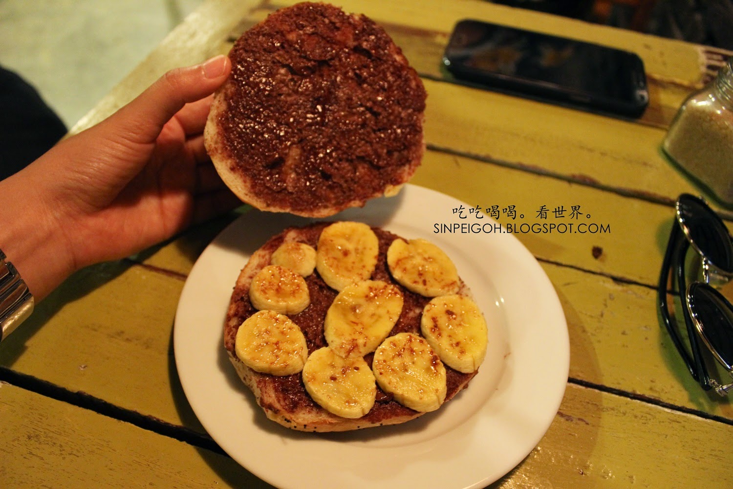 巧克力醬Nutella和香蕉是絕配,搭上Bagel的口感也很好哦,值得一試。