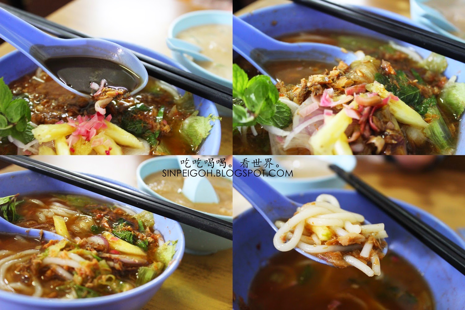 檳城的叻沙是我們南馬的Asam Laksa,味道是帶酸的。蝦膏放在湯匙裡,隨你自行添加,我大多都是直接放下攪拌就是了(要入鄉隨俗嘛,呵呵)!我是個超愛吃叻沙的人,酸辣絕對是我的最愛。這一檔華人叻沙從配料、魚肉、叻沙粉到湯頭我都很滿意,真的很不錯哦。