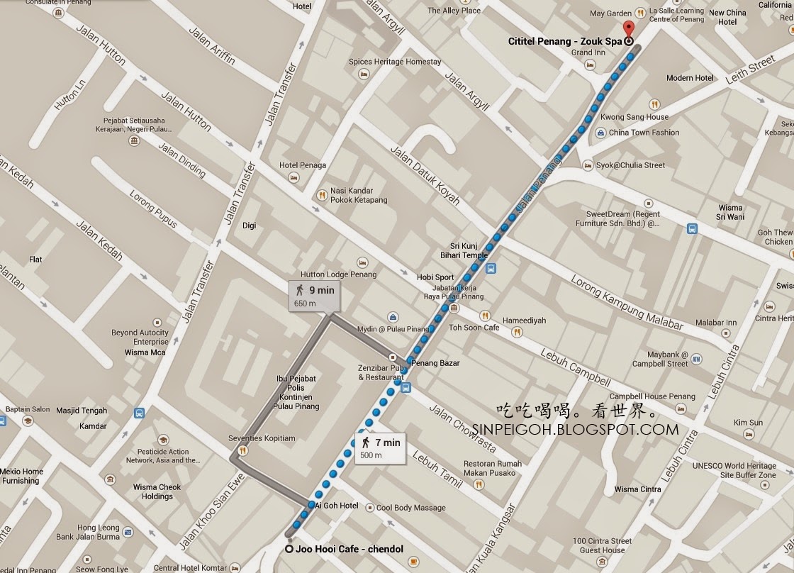從Cititel Penang到愉園茶室真的非常方便,只要一路直走大概7分鐘就抵達咯。