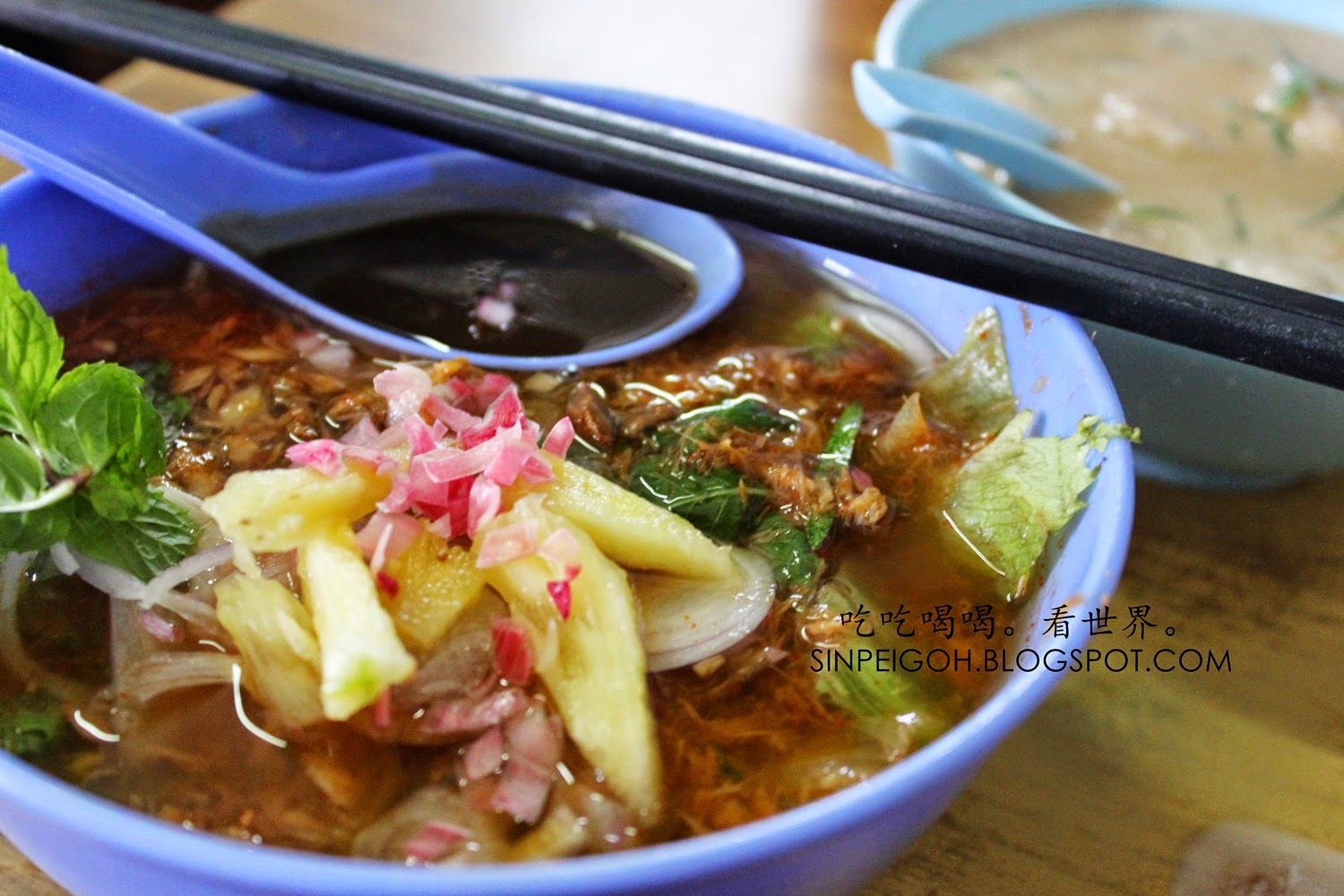 檳城的叻沙是我們南馬的Asam Laksa,味道是帶酸的。蝦膏放在湯匙裡,隨你自行添加,我大多都是直接放下攪拌就是了(要入鄉隨俗嘛,呵呵)!我是個超愛吃叻沙的人,酸辣絕對是我的最愛。這一檔華人叻沙從配料、魚肉、叻沙粉到湯頭我都很滿意,真的很不錯哦。
