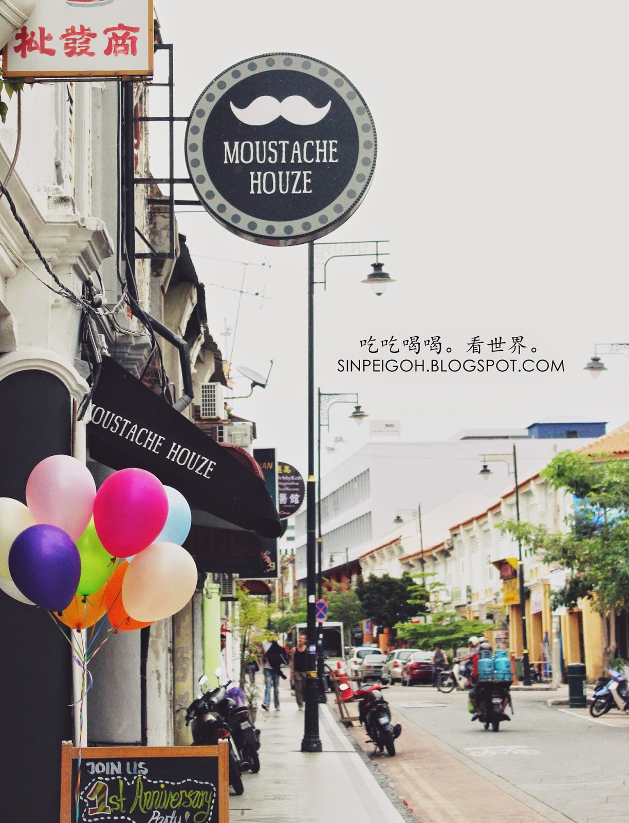 檳城的特色咖啡館一點都不少,在檳城的最後一站我們來到了佈滿可愛小鬍子咖啡館: Moustache Houze。還記得第一次在別人的部落格裡看見這家咖啡館就被它的鬍子所吸引,沒想到自己真的走進了這鬍子的世界,這感覺真的很棒。