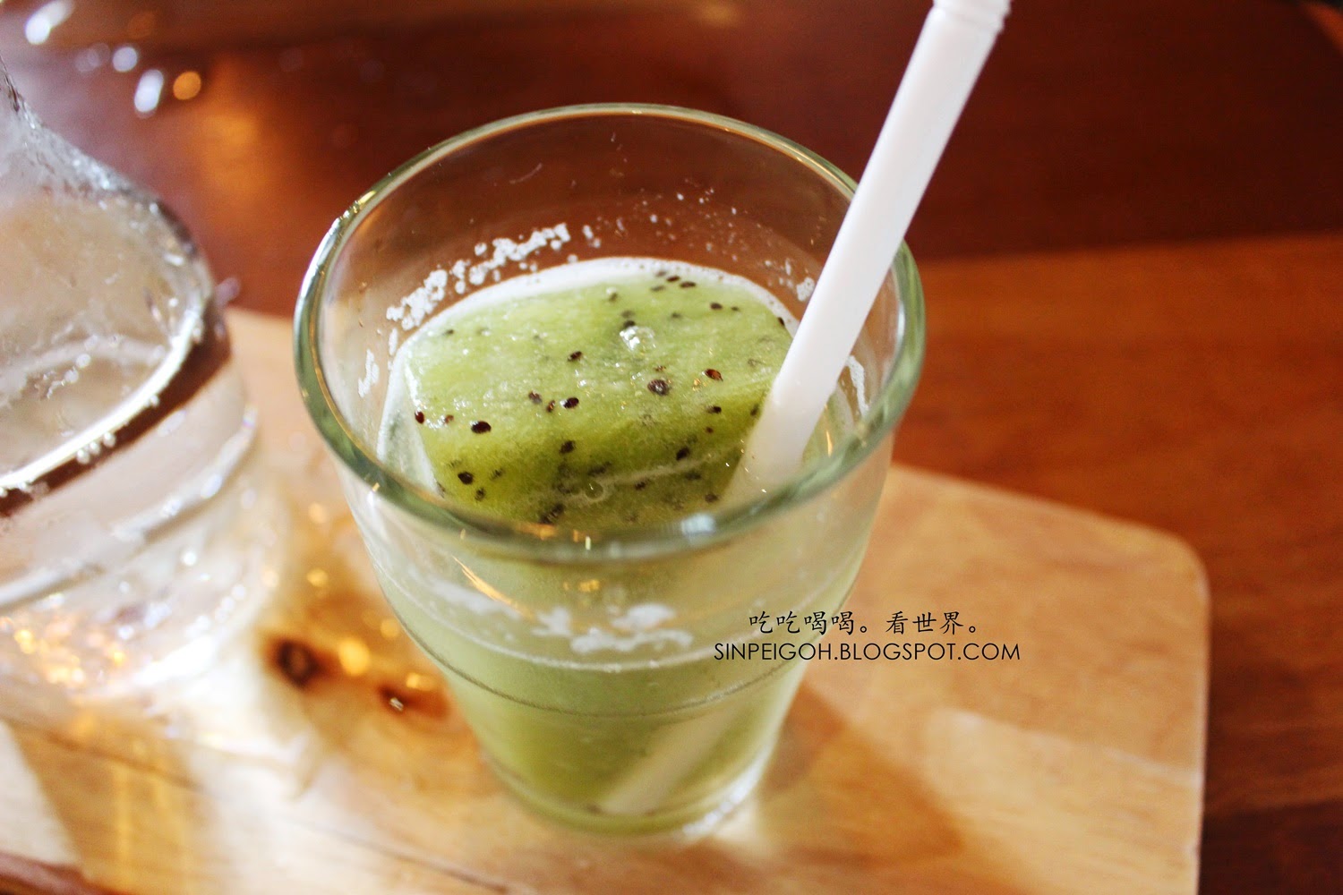 由於前一餐喝了咖啡,我選擇了冰涼的奇異果冰塊+蘇打水。