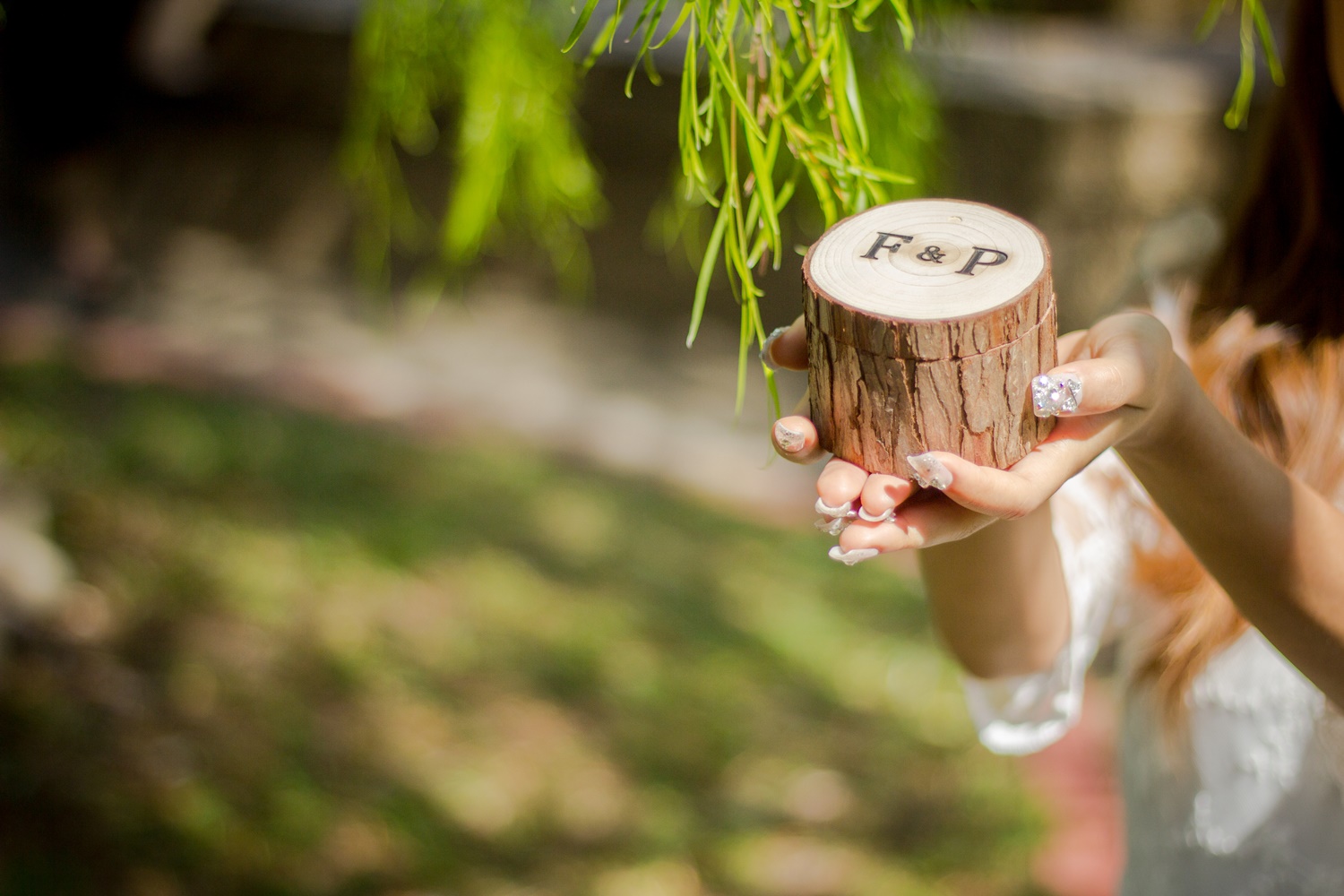 二話不說就是下訂單了啦!本來想雕刻的字母是我們一直用的FF + SP,但最後得知只能刻三個字母,所以只好用了F & P。雖然當下有些小失望,但收到貨的那一刻是超級興奮的!因為真的太漂亮啦,就和我心目中的樹桐戒托一模一樣呢❤