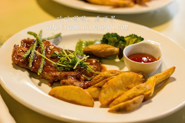 搭配的是黑胡椒醬汁,很不錯,不過肉質稍硬了些。