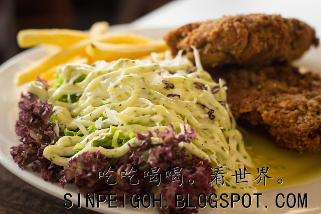 先說說這份量完全就是好大方,兩大片厚實的煎柳扒、多到嚇人的蔬菜沙拉和不能少的薯條。