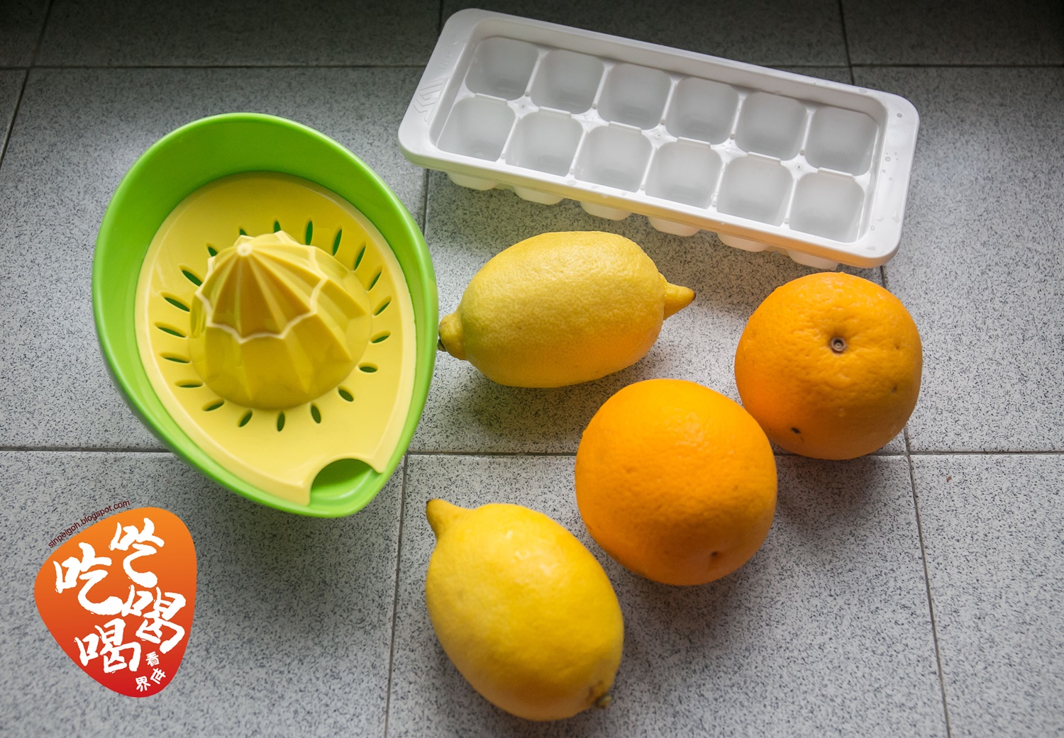 冰塊容器、新鮮水果(檸檬、橙、西瓜較合適)、榨果汁器