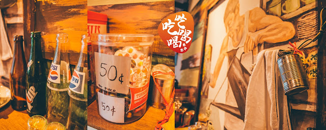 一旁不單擺放了一些舊式汽水瓶,還有售賣小時候吃的糖果呢!
