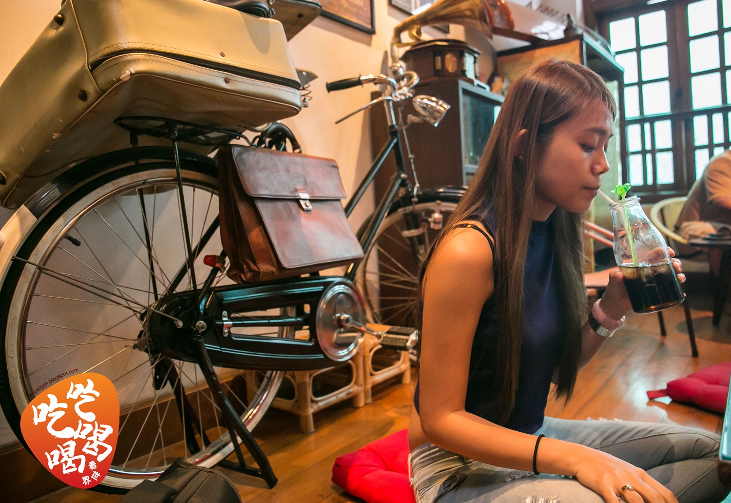 坐在木質地板區,喝著特色飲料,享受復古環境,真棒✌
