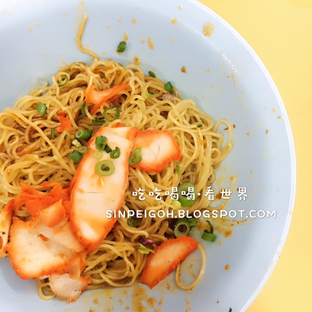 新山的乾撈麵不像居鑾的那麼黑,黑醬油較少看起來白白的。老公很喜歡麵條的味道,但我稍嫌吃起來有點鹼水味,不過我喜歡加辣版的麵幹很特別。