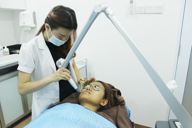 After the decision was made, my first treatment was about to start. Nurse helped to clean my face and then Dr Ang started to do Yag Laser.