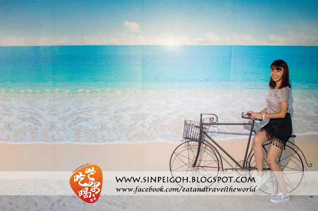 這地上是真沙哦,還有腳踏車道具能讓顧客拍照,好有創意!
