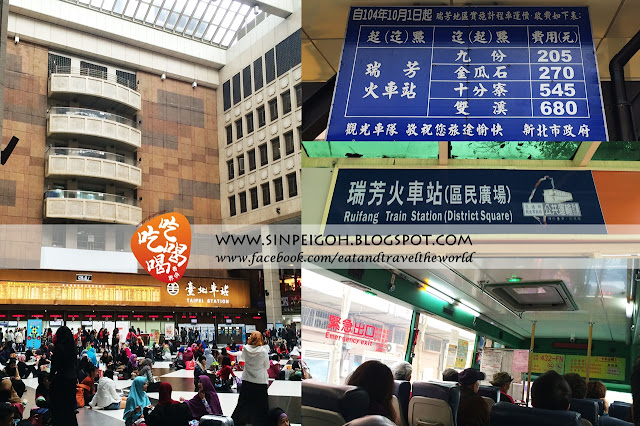 一樣的我們先來到台北車站再搭台鐵(火車)到瑞芳火車站。一開始就和大家說住在台北就要靠近台北車站的好處就是台北車站就是個轉運站,不管是捷運、火車、客運或是高鐵都聚集在這裡,非常方便。從台北車站到瑞芳火車站大概需要一小時,出站後步行到區民廣場等待公車去九份(大概20分鐘),沒記錯的話一人只需15台幣,刷悠游卡就可以了。如果要搭德士的朋友,費用是205台幣。