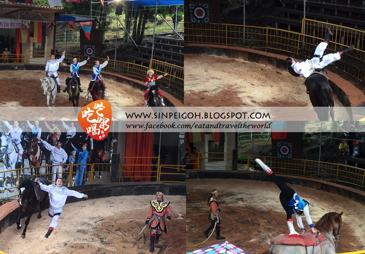 看了綿羊秀後需要走一段路到木馬秀場,雨一直沒停過,我們一路走去大家幾乎都濕透了 T.T 慶幸的是木馬秀場是有遮蓋的,不過也因為是下雨天很多危險動作不能展現出來,真是可惜!但這四位表演者已經好厲害了,大家都對他們的表演驚嘆不已,很讚哦。