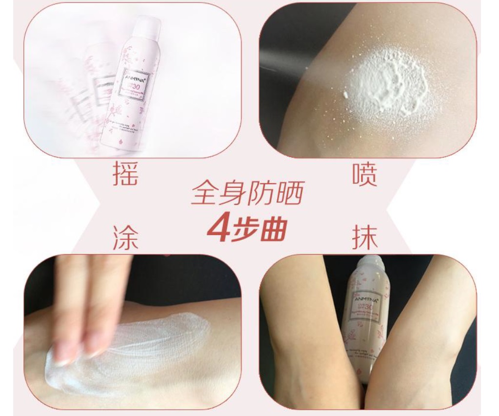 用前搖一搖,對著需要防曬的部位距離20cm噴一下,用手搽一搽,瞬間可以白一個色系哦!這款防曬噴霧不止有防曬作用,還能提亮膚色呢,真讚❤