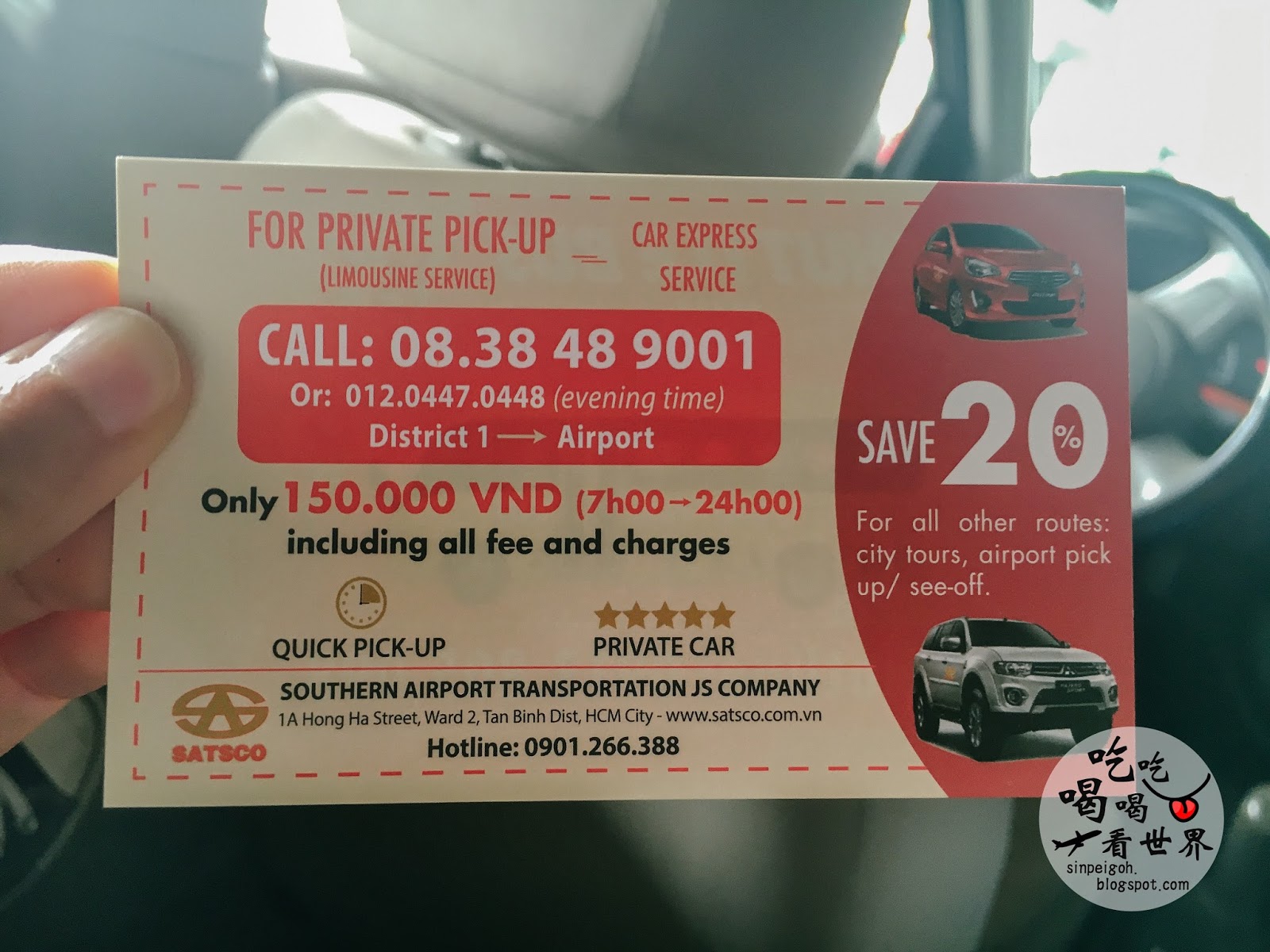記得坐Satsco的私人車,預先打電話,車子很準時抵達,回程只需150,000VND(RM30)。