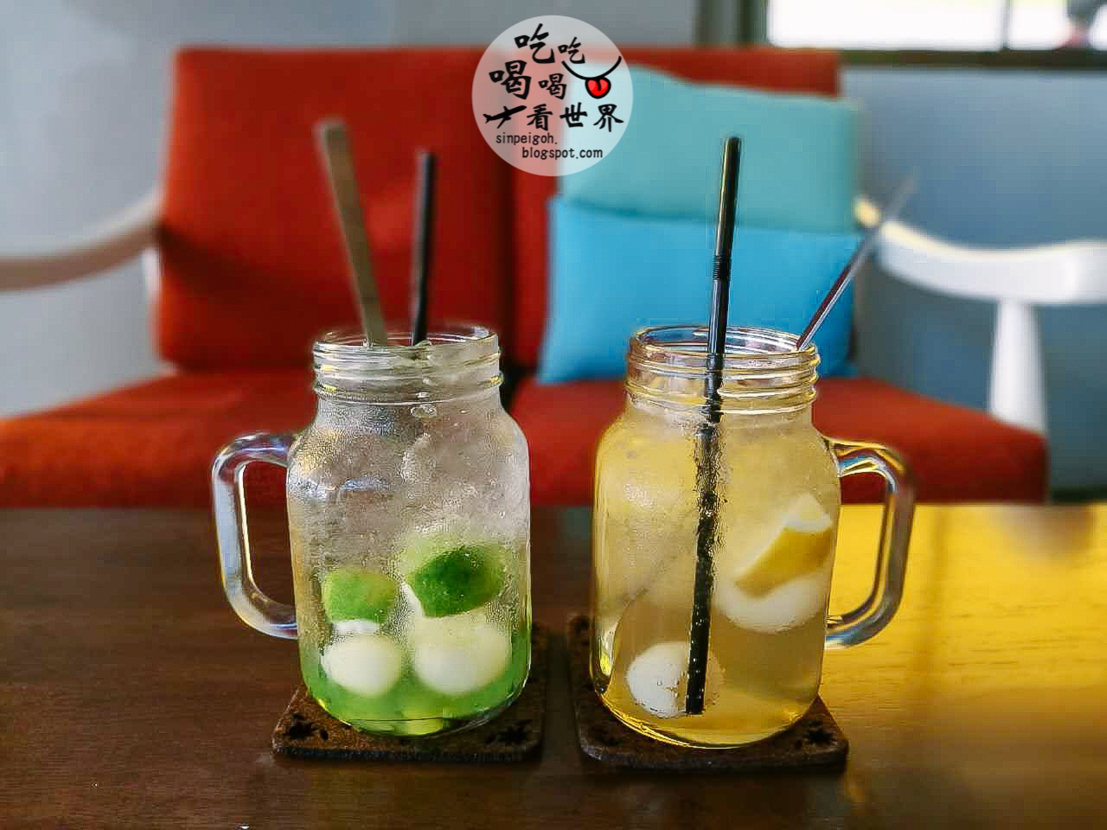 右: 冰蜜糖檸檬蘇打水 Iced Sparkling Honey Lemon with Longan, RM9.90