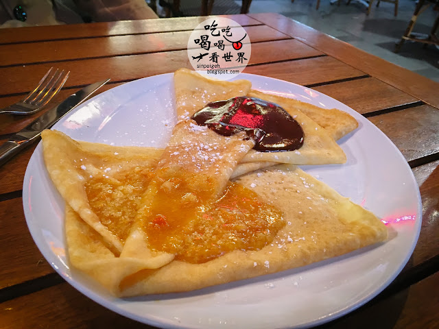 這也是套餐裡的選擇:巧克力醬+橙香薄餅❤