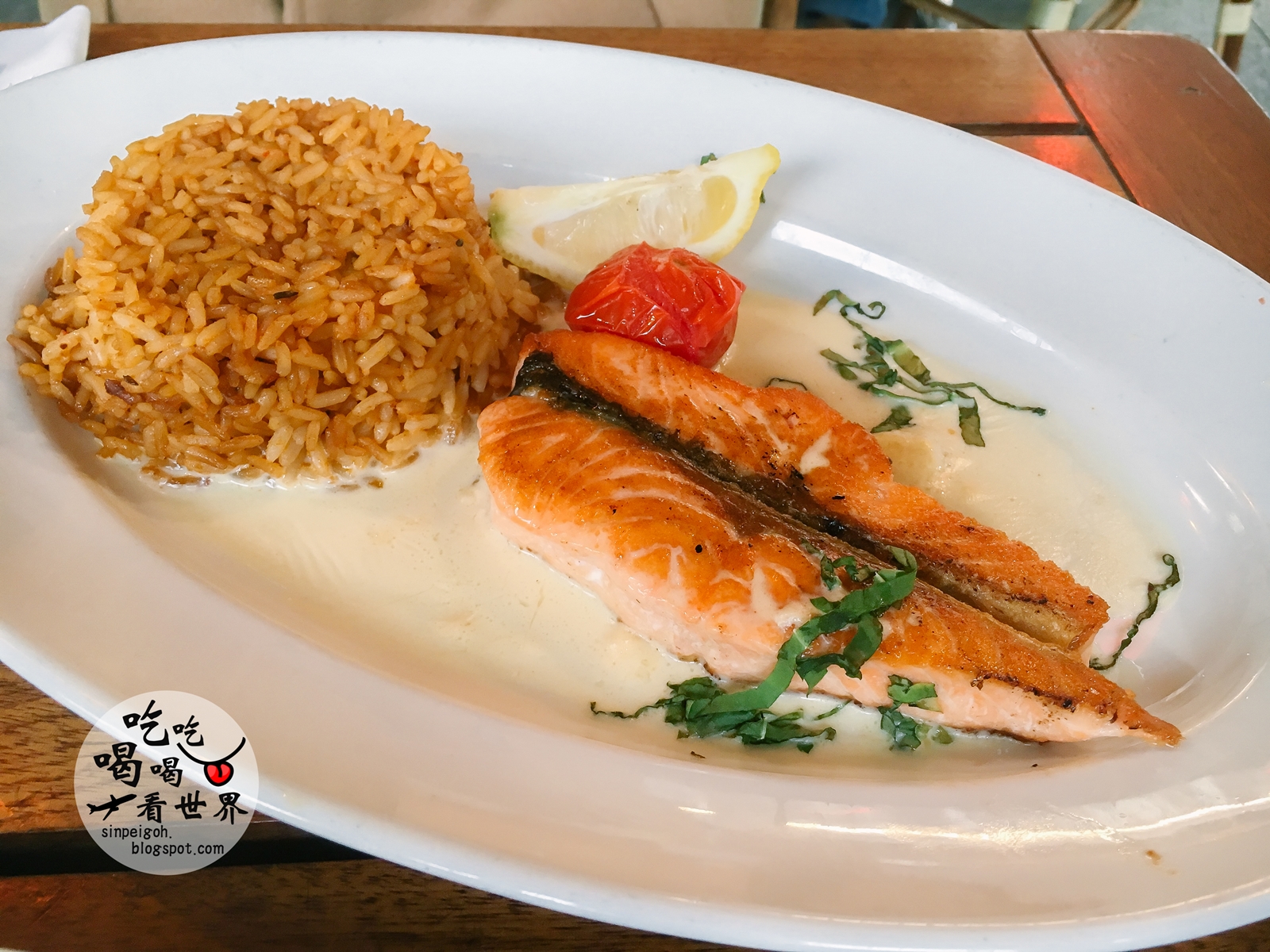 這是在套餐裡我們選擇的主食,有厚厚的三文魚搭配酸醬之外,