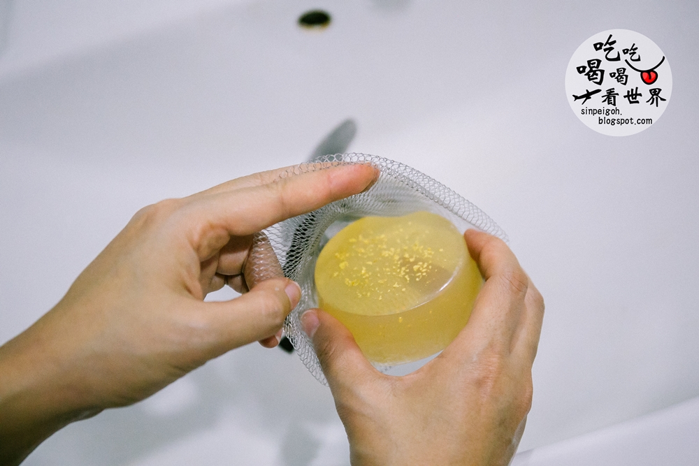 接著呢,我們把凝磚放入起泡網。