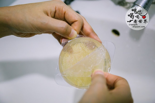 首先把凝磚後面的膠紙撕開,再把凝磚取出。