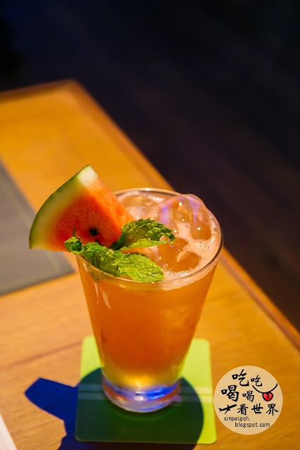 這杯Rohito雞尾酒是由灰雁(Grey Goose)、西瓜汁和百香果調製而成,酒精成份不會太重,適合偏愛果汁的朋友哦。