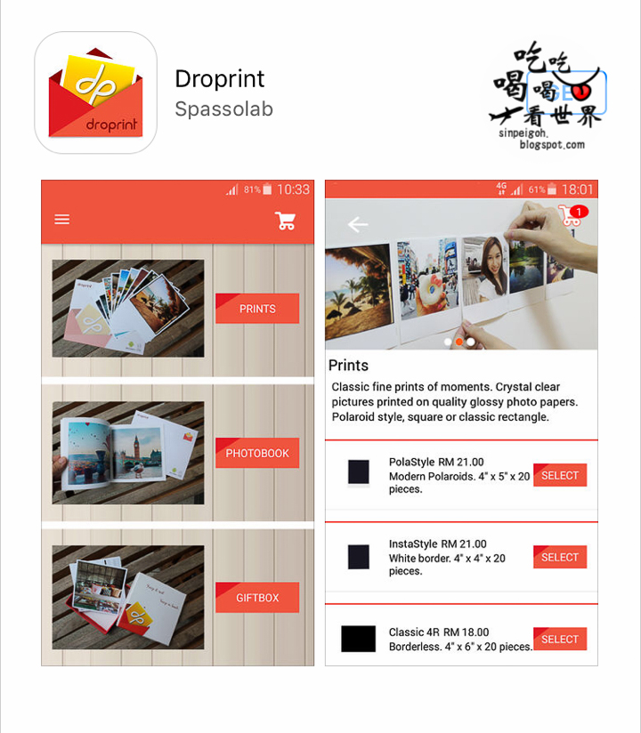 而貼心的droprint也有三種不同的相片供大家選擇哦〜