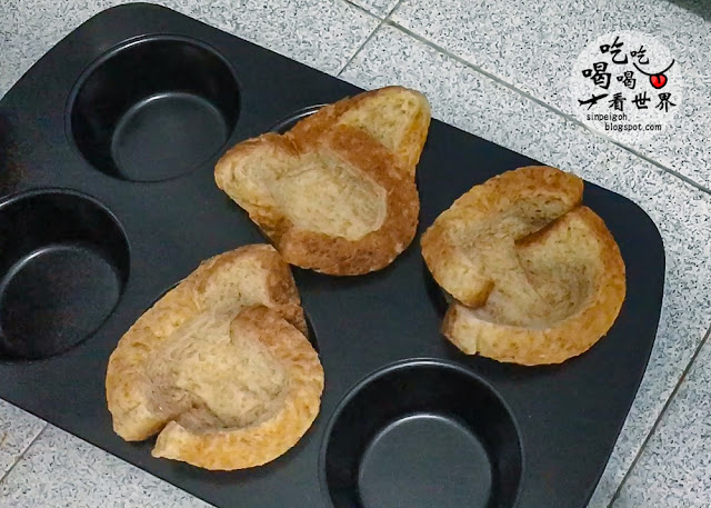 還要注意的是一定要把吐司壓緊,才可以有完美的杯子造型。