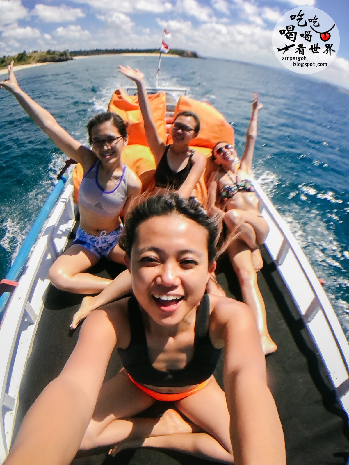 吃飽了繼續往下個浮淺地點奔去!坐在船頭吹海風超酷的,但是浪大的時候要特別小心,拍完照記得乖乖回去哦^_^