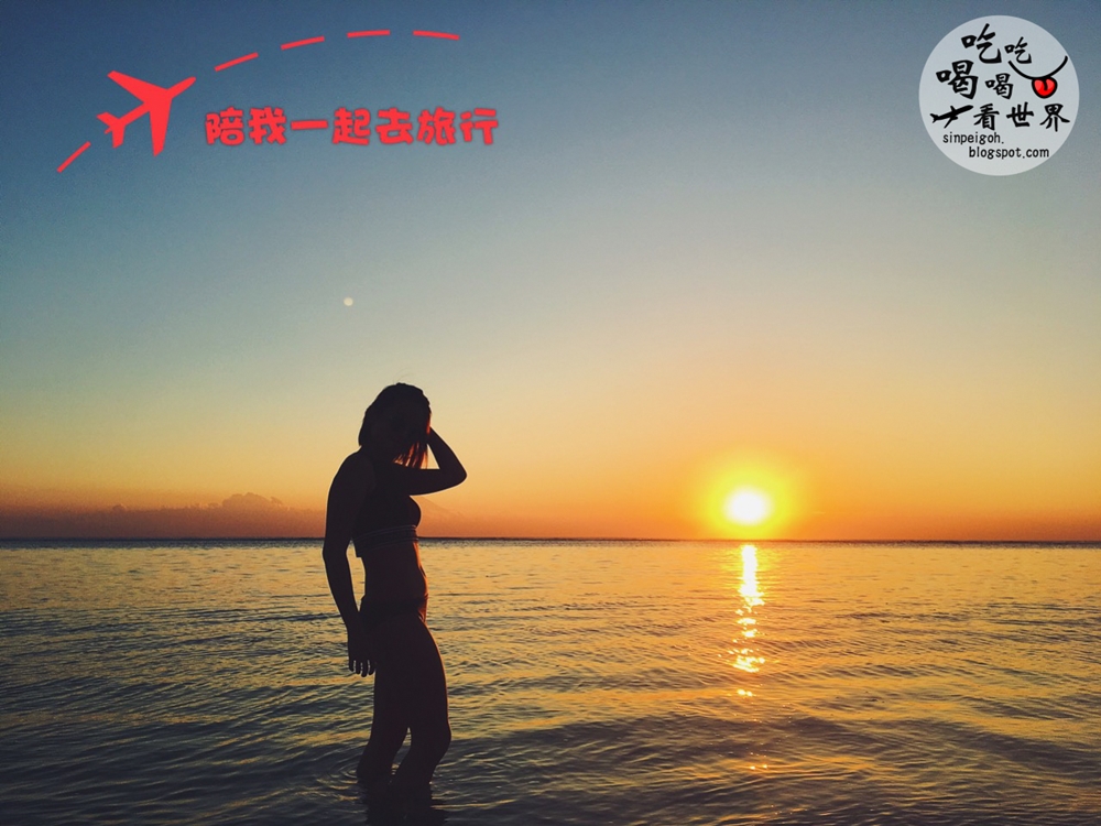 接著我們上船繼續往最後一站駛去:Pulau Pasir。抵達已是夕陽時分,這裡的特別之處就是它正在海中央哦!你無法想像海中央突然冒出了一個海灘,然後慢慢看著漲潮把沙灘連接上,真的非常奧妙❤