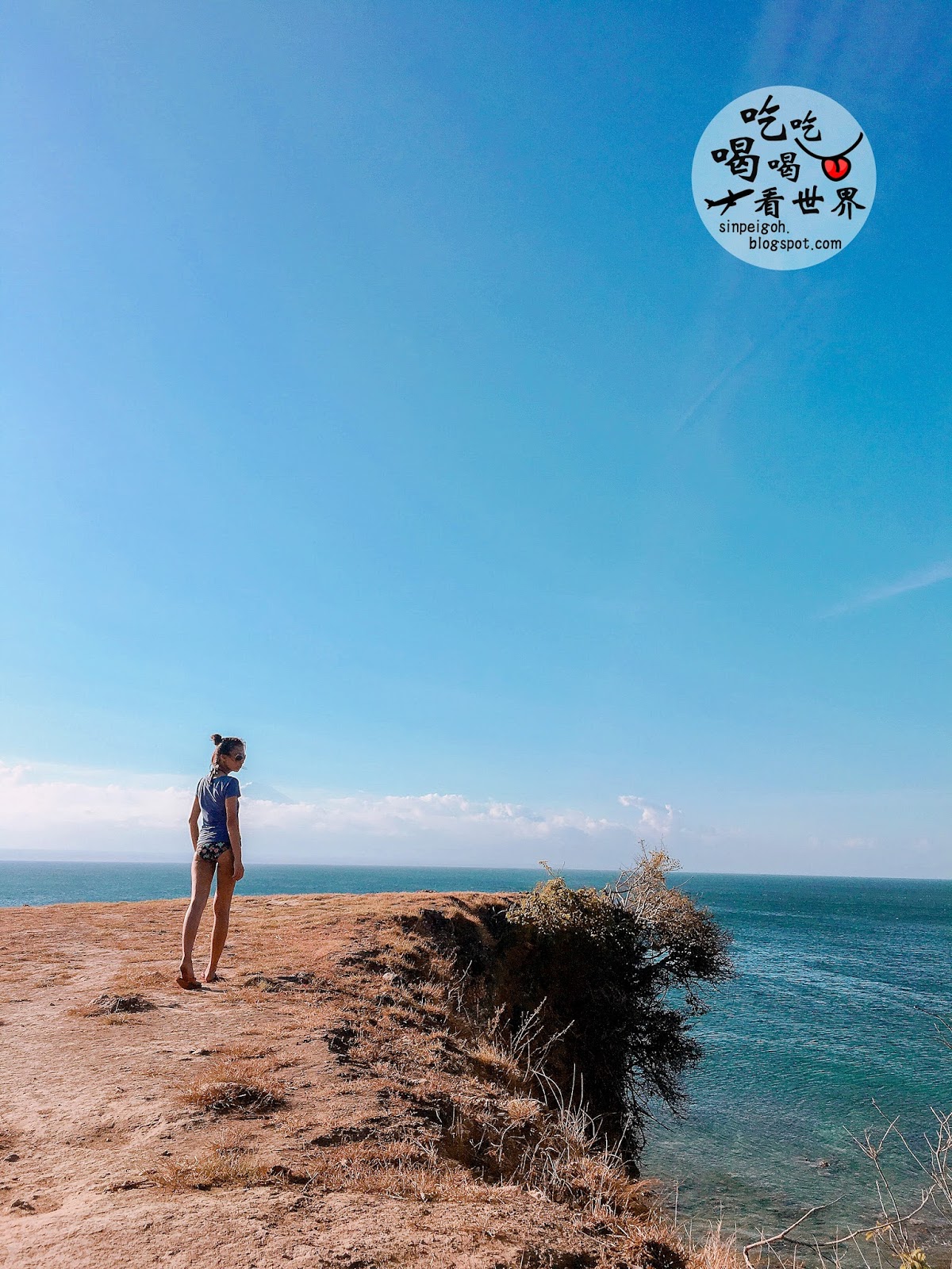 但是只要越接近海水,你就會看到沙灘真的是一片粉粉的很漂亮。我不想欺騙大家所以也不會故意把照片改成粉色,大家不要被網上的照片騙了哦〜雖然沙灘沒有很粉紅,但我還蠻推薦大家到這裡看看,尤其是漂亮的懸崖一定不能錯過!