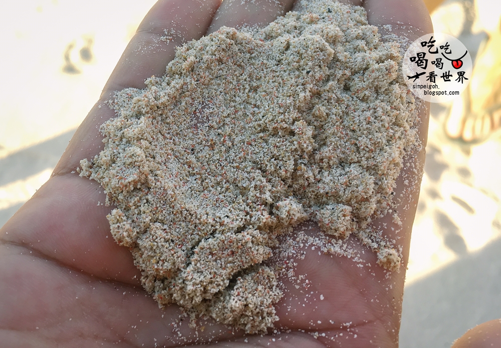 而這就是我上面說的粉紅珊瑚,因為被海浪打上岸,碎片參在白色沙灘形成了淡淡的粉色。